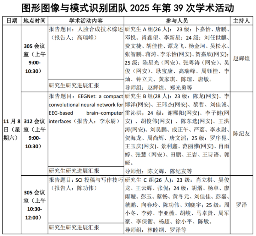 图形图像与模式识别团队B组2025年第39次学术活动