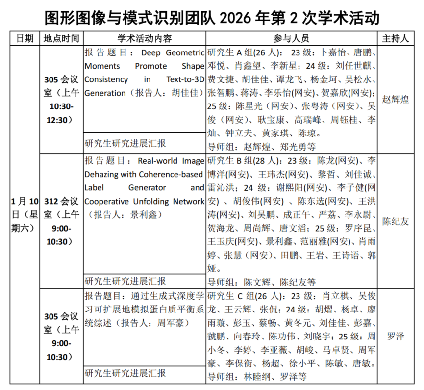 图形图像与模式识别团队C组2026年第2次学术活动