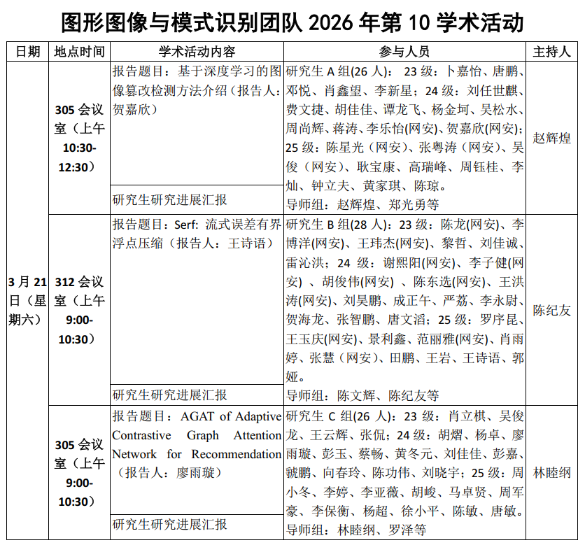 图形图像与模式识别团队A组2026年第10次学术活动